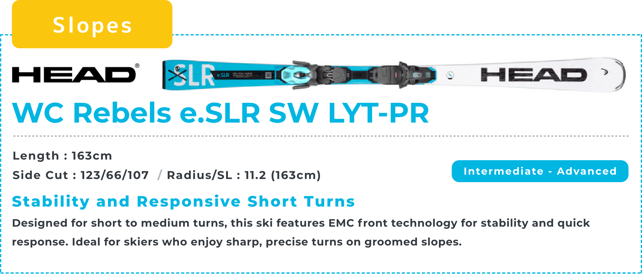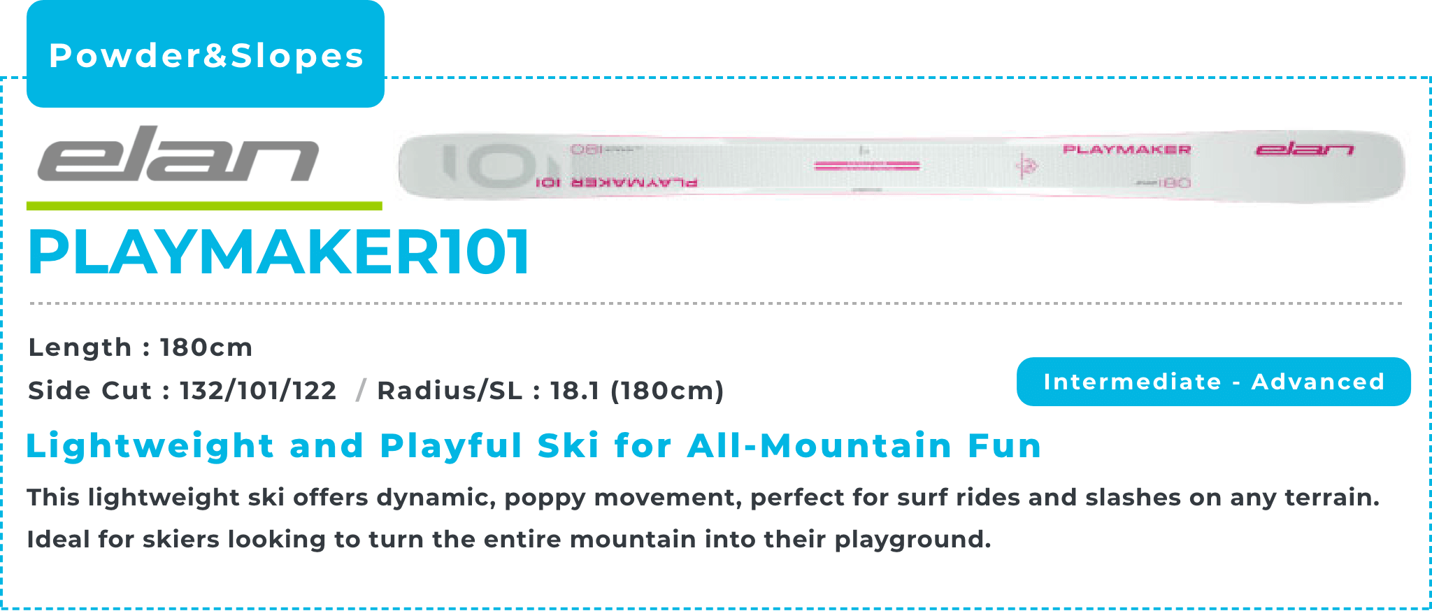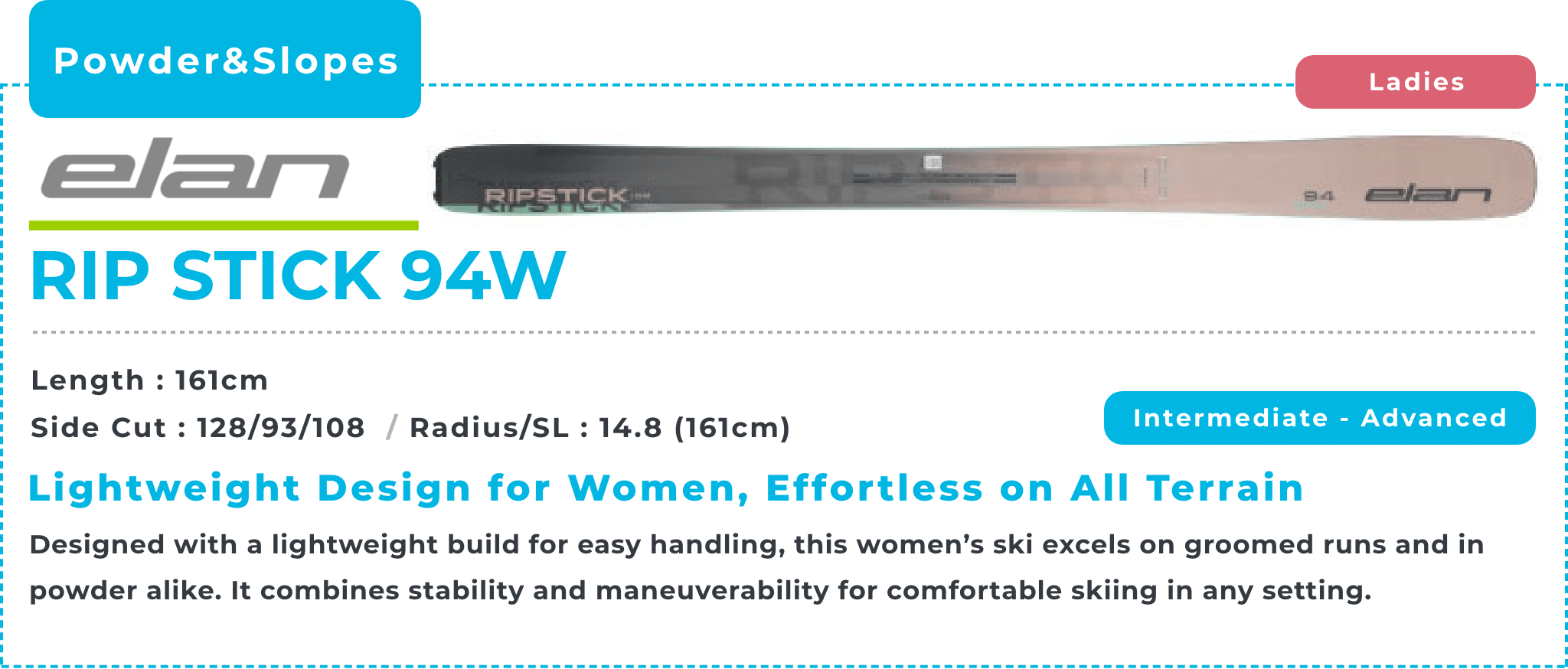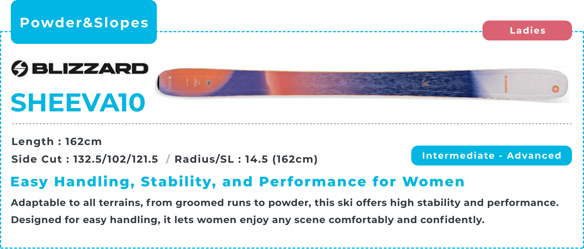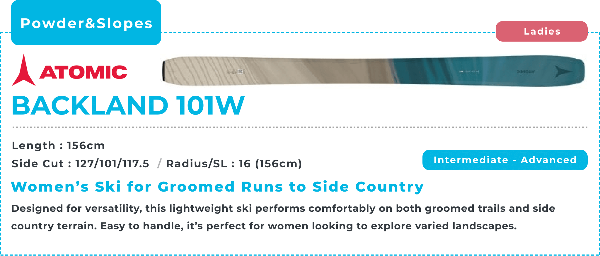 Focusing on short to medium turns, this model combines advanced technology for stability with responsive turning capability, enhancing the joy of powder skiing. Its unique swallowtail design and wider shovel, combined with an early rise tip, deliver a surf-like experience in powder. Meanwhile, the rear-mounted stance and solid camber ensure steady carving on harder snow.